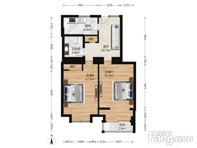 房子是77.37平的,平层,双南卧室,主卧室带阳台,次卧室南向,采光好;进门是客厅,右侧是厨房,北向大窗,通风好,往前走是卫生间;户型方正,功能齐全。