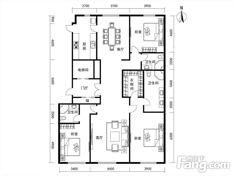 房屋拥有相对宽松的尺寸,布局通透,动静分离,设计豪华