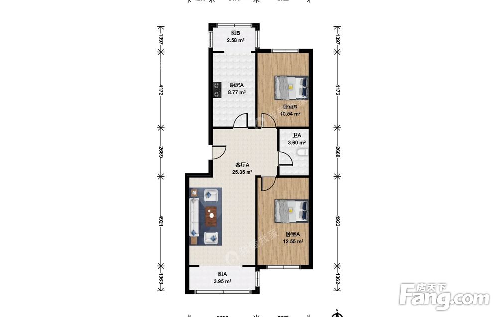 • 当前房源报价为:89.00万