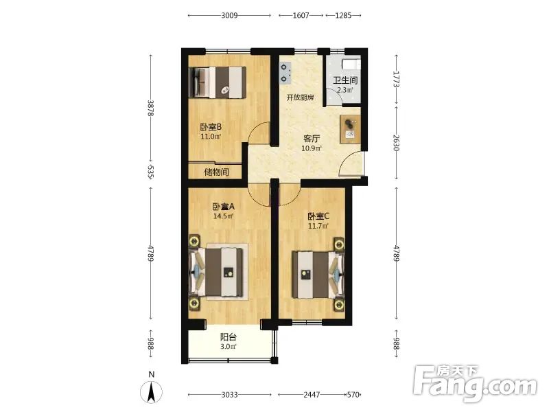 钟界沸0.5 甘水桥 3室1厅 76.42平