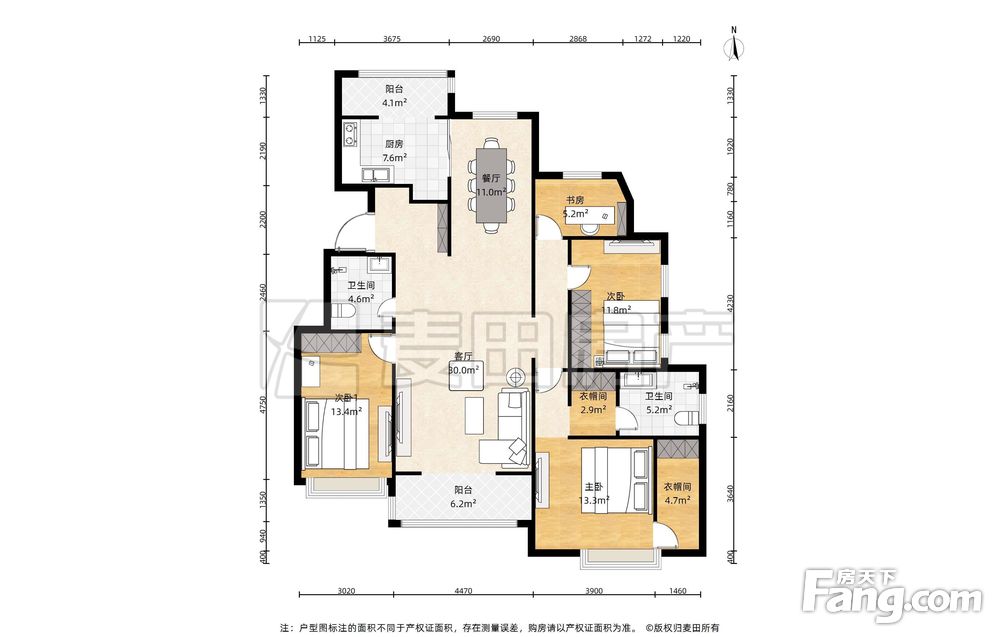 房屋年代∶2013,面积∶168.0平方米,朝向∶南北