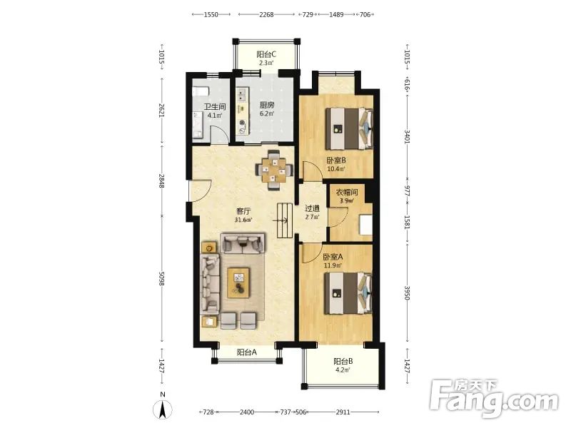 房屋年代:2005年,面积:96.91平方米,朝向:南北,空间利用率高
