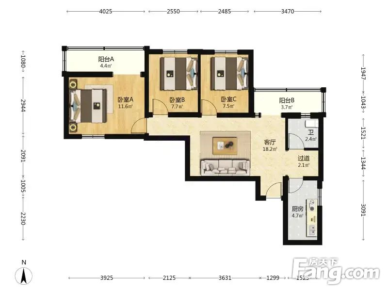 3室1厅1卫