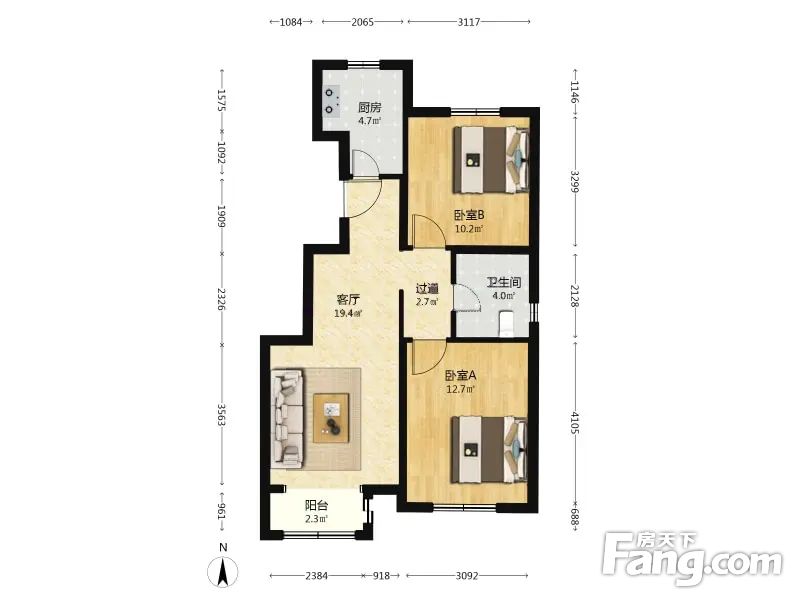隆兴园二里 2室1厅 83.06平