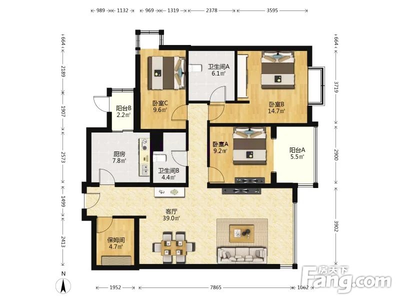海晟名苑南区 3室1厅 150.75平
