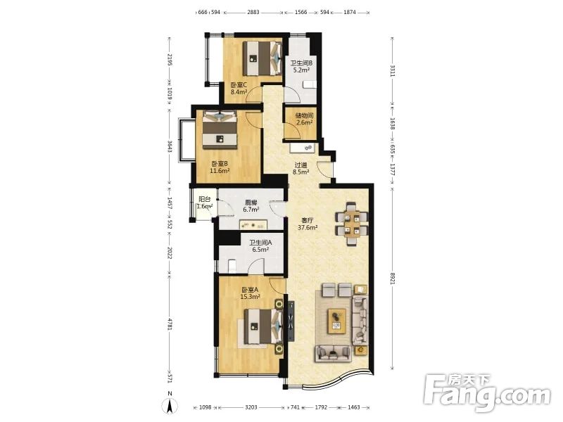 3室1厅2卫
