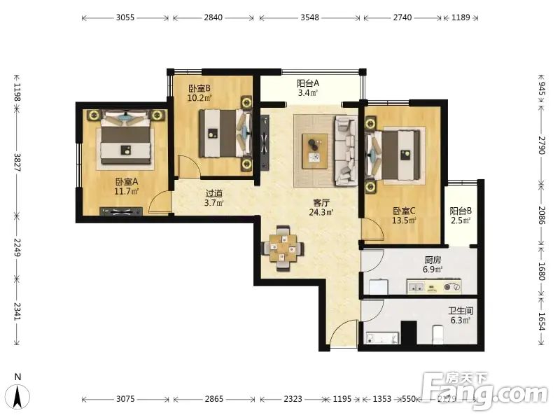 自营房源:西北向三居室 配套好 楼层好 大三居