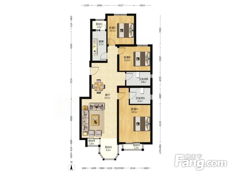 3室2厅1卫