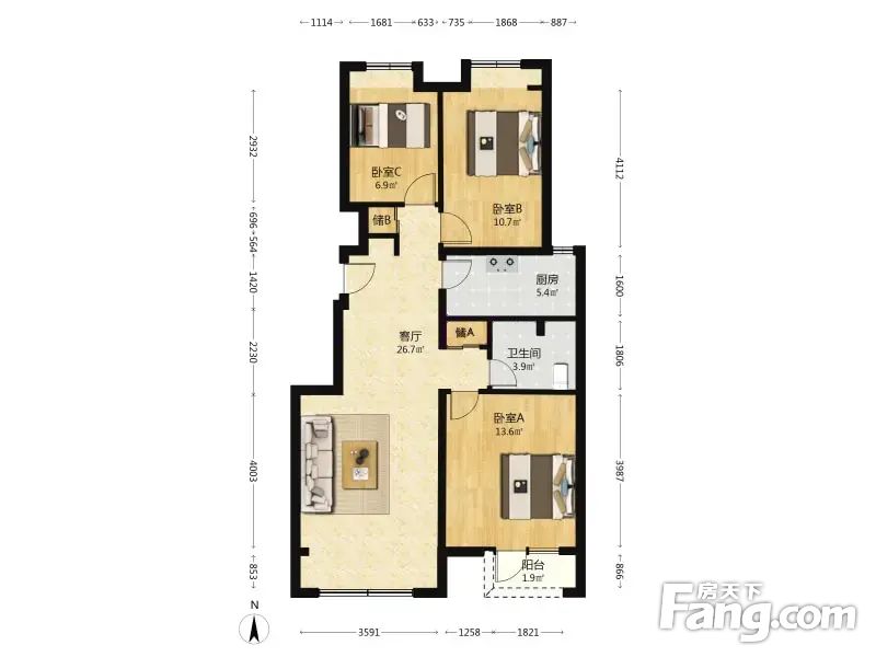 长阳半岛2号院 3室1厅 93.63平