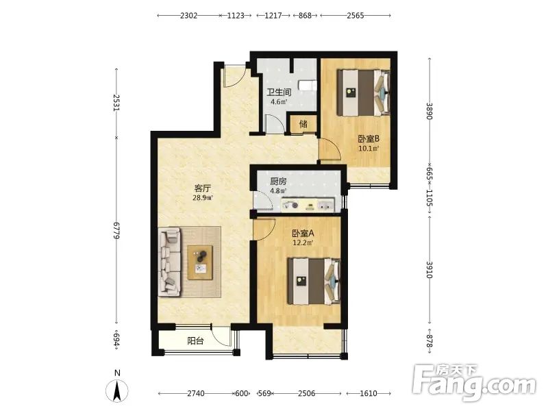 长阳半岛2号院 2室1厅 86.43平