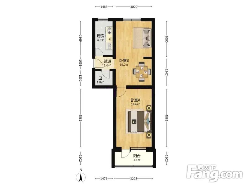 (客户0)六场宿舍 2室1厅 56.14平 南北向