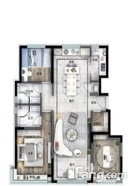 房屋拥有相对宽松的尺寸,布局通透,动静分离,设计豪华