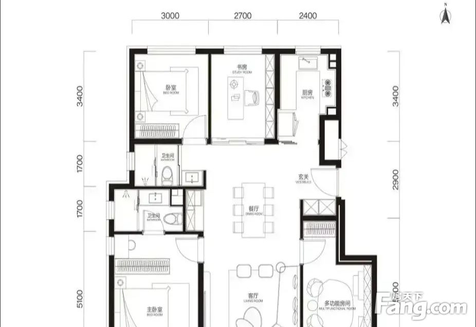 房屋拥有相对宽松的尺寸,布局通透,动静分离,设计豪华