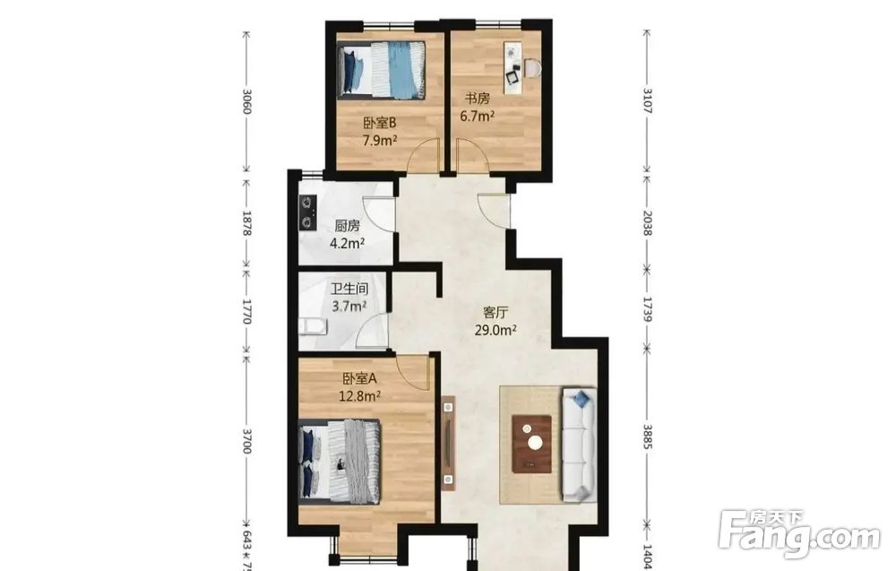 3.户型正气:南北的户型、格局周正合理、无浪费面积。