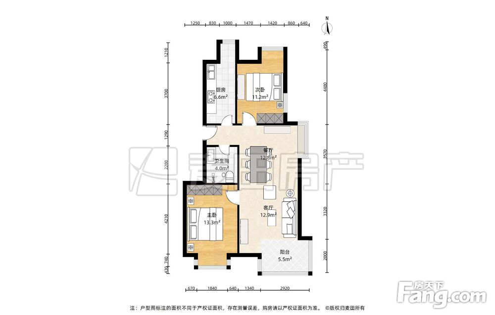 房屋年代∶2012,面积∶87.07平方米,朝向∶南北
