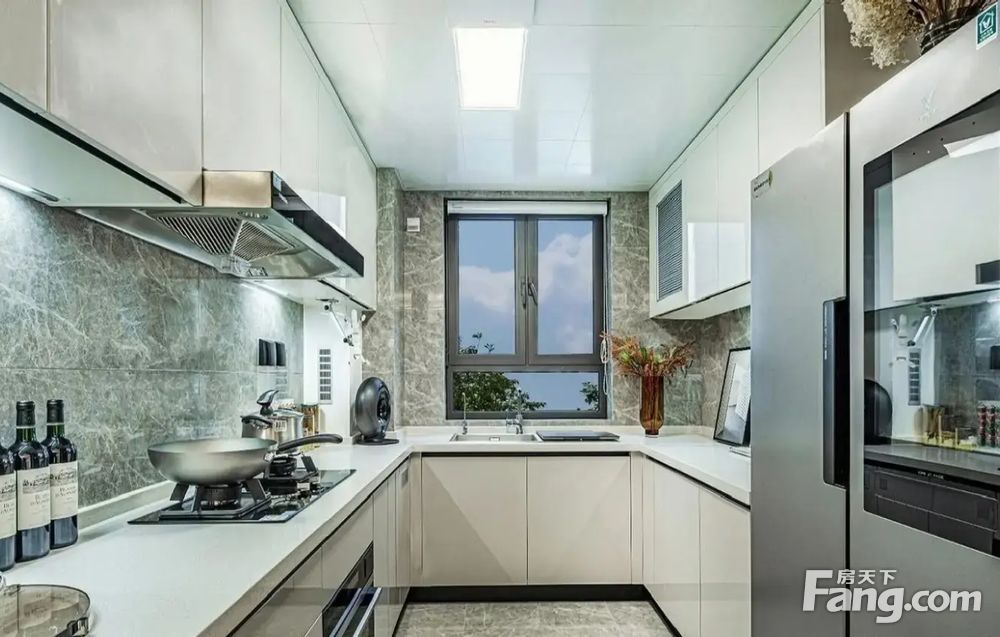 ④配3M净水器,方太洗碗机,格力空调,分户式新风系统,厨房凉霸,美国爱适易厨余粉碎机,西门子烟机灶具,蒸烤箱一体机,三层双中空LOW~E玻璃