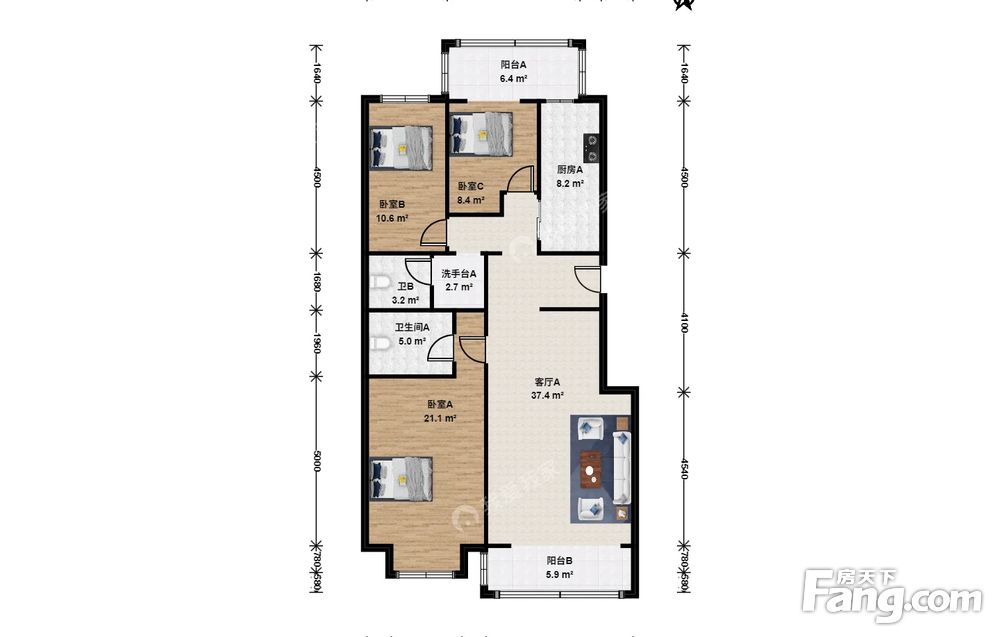 3室1厅2卫
