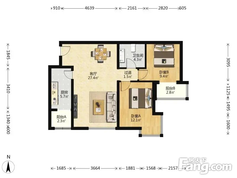 房屋拥有相对宽松的尺寸,布局通透,动静分离