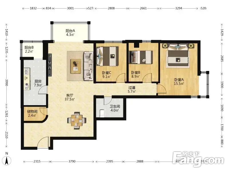 房屋拥有相对宽松的尺寸,布局通透,动静分离