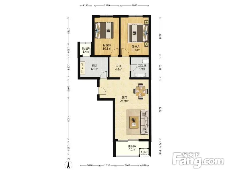 房屋拥有相对宽松的尺寸,布局通透,动静分离
