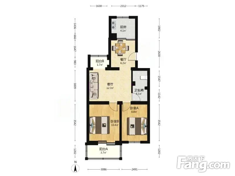 郁花园一里 2室1厅 71.61平