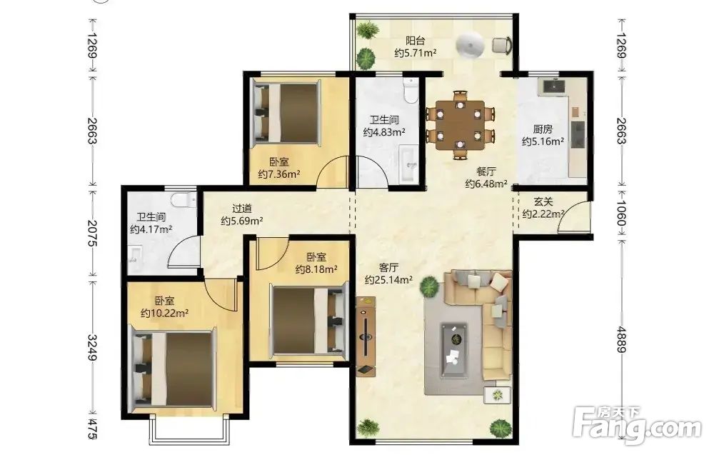 • 当前房源报价为:278.00万
