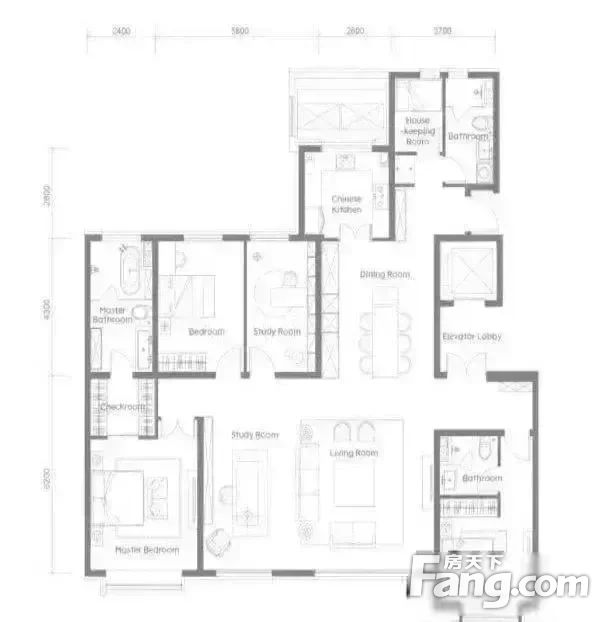 房屋拥有相对宽松的尺寸,布局通透,动静分离,设计豪华
