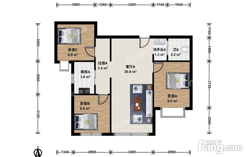 3室1厅1卫
