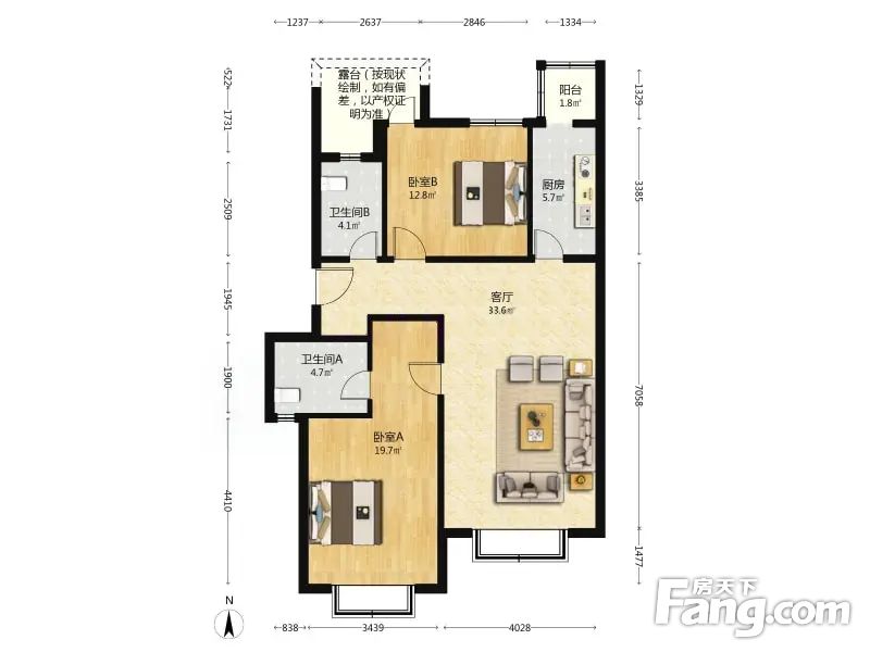 七号线地铁旁 桃花岛 南北通透大两居 满五年V1 全明户型