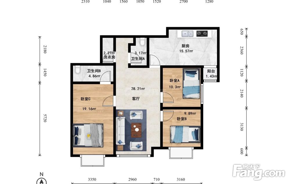 3室1厅2卫