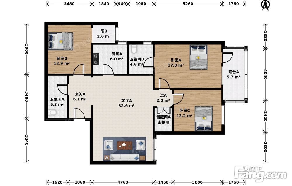 3室1厅2卫