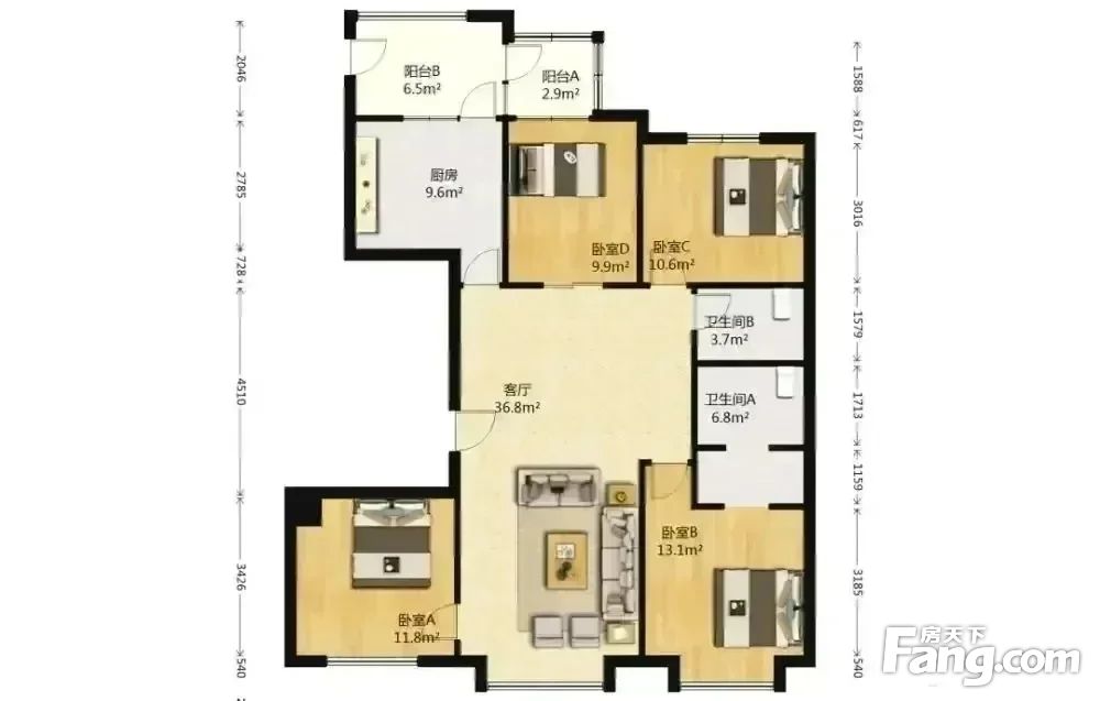 3.户型正气:南北的户型、格局周正合理、无浪费面积。