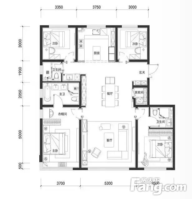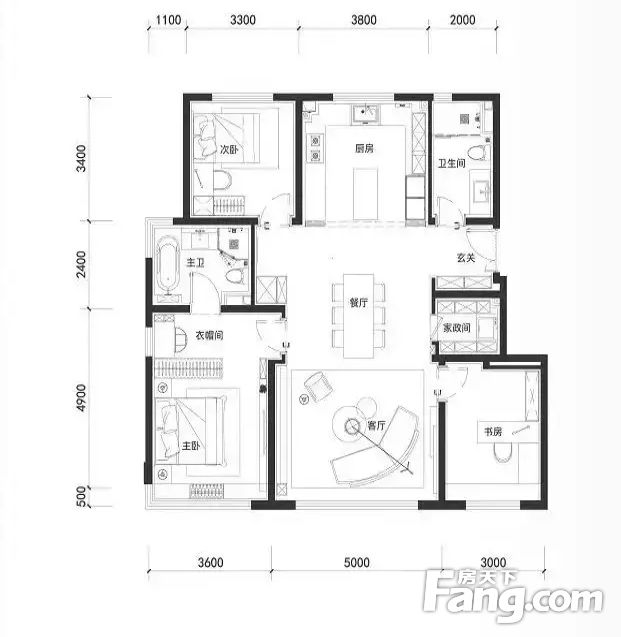 房屋拥有相对宽松的尺寸,布局通透,动静分离,设计豪华