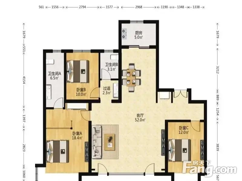 3室1厅2卫