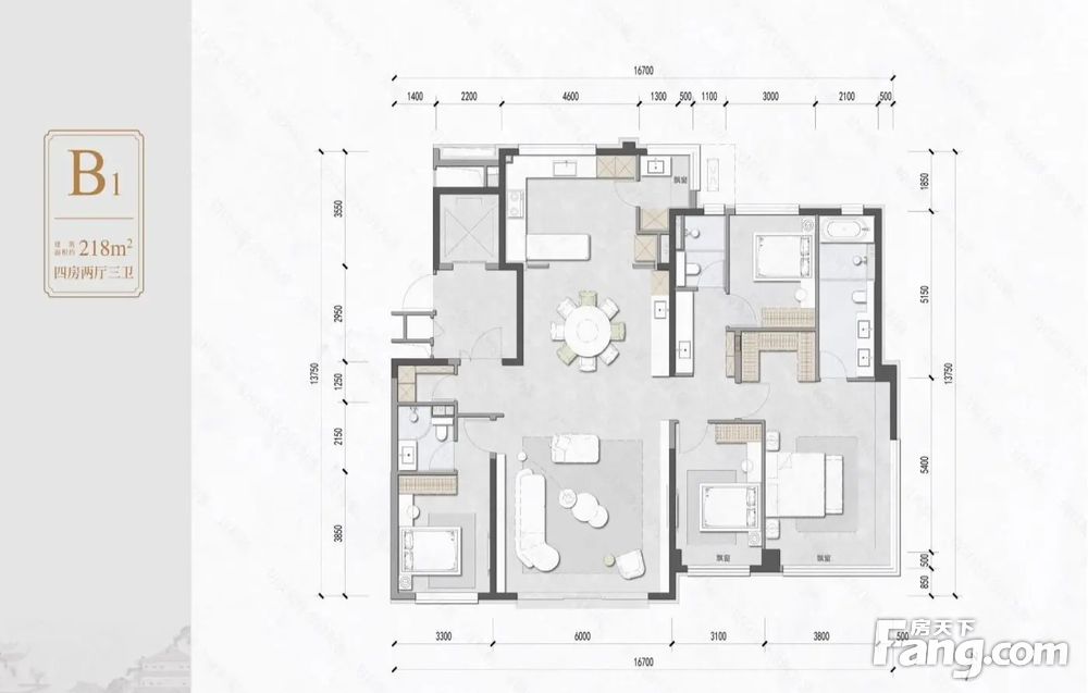 房屋拥有相对宽松的尺寸,布局通透,动静分离,设计豪华