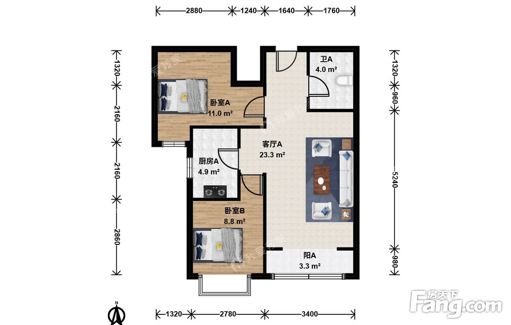 北关·悦澜水岸家园·2室·1厅
