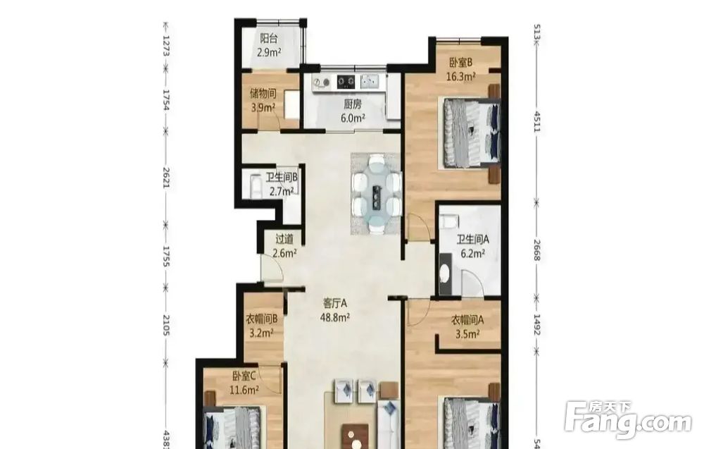 ②户型方正,分布合理,使用率高,没有浪费面积。