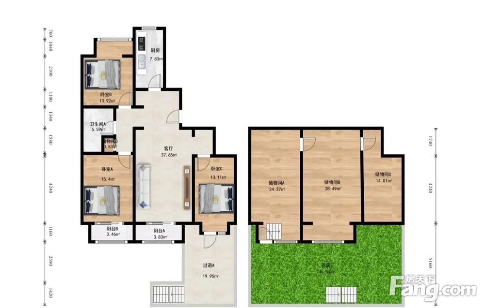 ②户型方正,分布合理,使用率高,没有浪费面积。