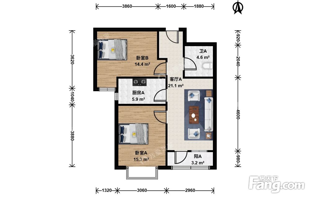 北关·金地格林格林北区·2室·1厅