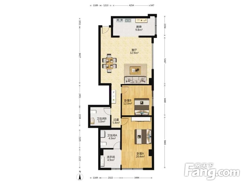【1】好楼层,南北通透,客厅厨房分离,前后无遮挡,采光特别好。