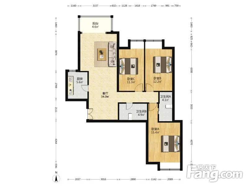 3室1厅2卫