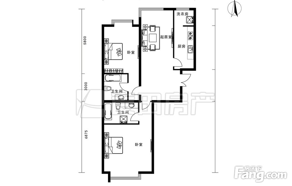 2室1厅2卫