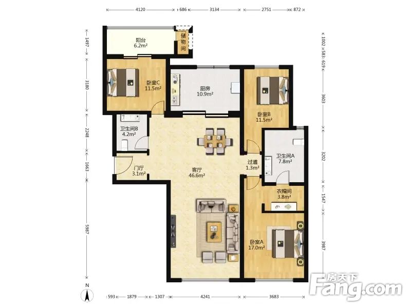 楼龄新(2022年底交付),环境好,户型方正,很少面积浪费, 是南北通透的大平层,客厅面宽大约4.5米,各个房间都较为宽敞, 动静分区合理,明厨明卫,居住体验感好