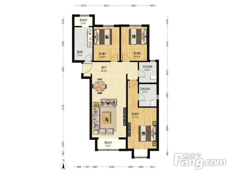 丽景长安 3室1厅 129.27平