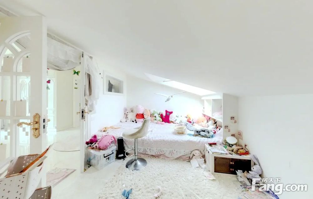 房子是复式结构,楼下是平层四居室,两个卫生间,楼上是客厅和大主卧,有独立卫生间,南侧是落地窗,窗外是展览管后湖,视野很好;