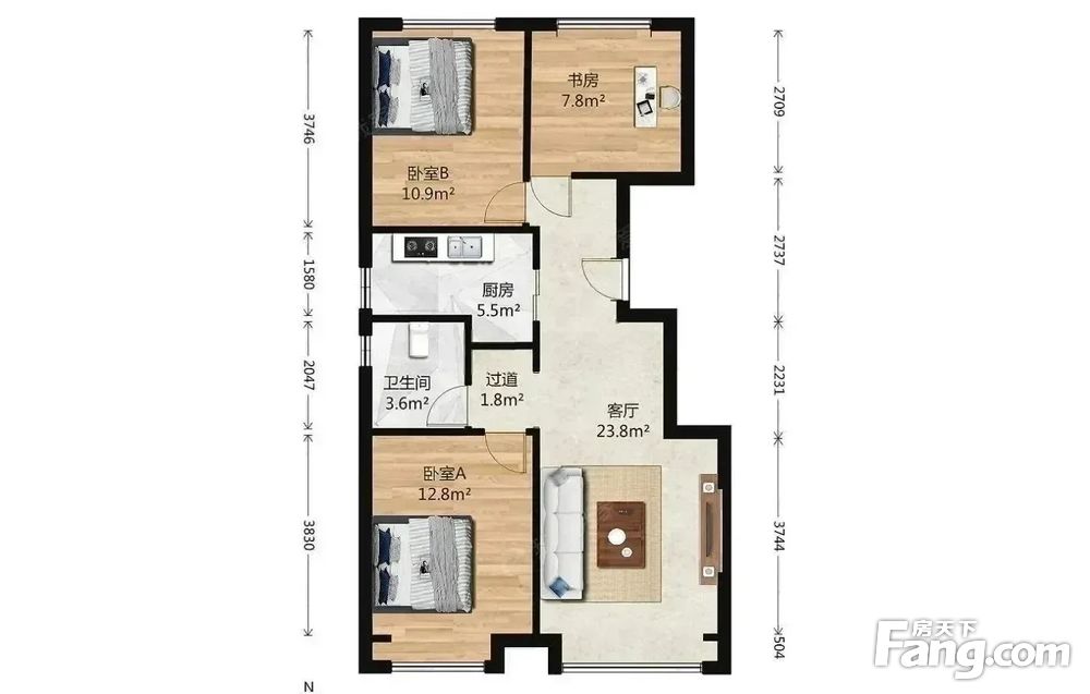 房山长阳篱笆房 首创新悦都二区3居室 南北通透