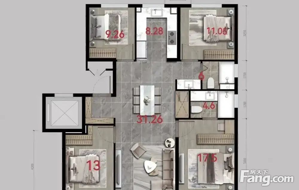 房屋拥有相对宽松的尺寸,布局通透,动静分离,设计豪华