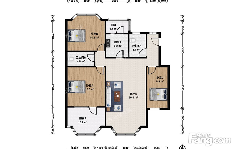 3室1厅2卫