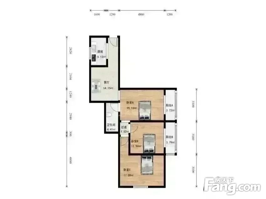 户型介绍:房子户型方正,两个卧室是东向,一个卧室南向