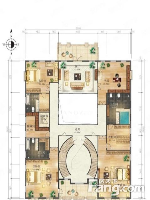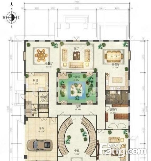 【户型面积】:前二后三+地下车库层,共4层,地上部分6室3厅。大气客厅,。